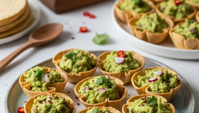 Guacamole Tortilla Cups | Low-Carb Party Appetizer with Fiesta Fit Queso Wraps